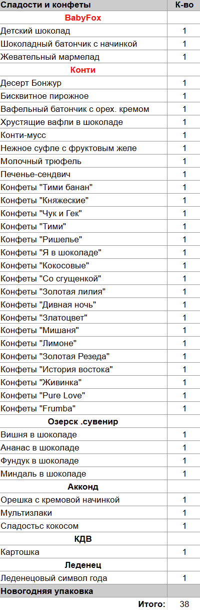 Кол-во сладостей: 38 шт.