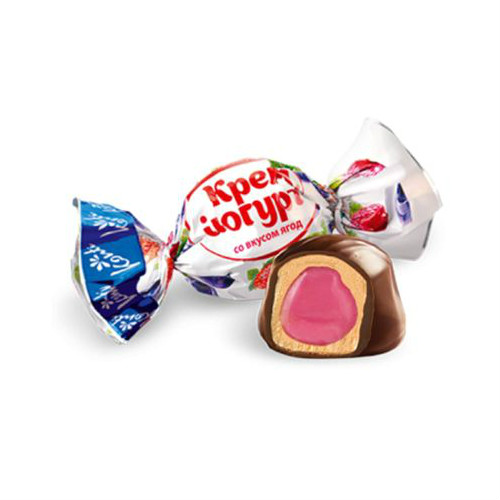 Конфеты Крем-йогурт со вкусом ягод производства компании "Конти" можно купить оптом с доставкой по Москве, Подмосковью и ЦФО. Низкая цена обусловлена отсутствием посредников при наличии прямого договора с производителем. Все актуальные сертификаты в наличии. Минимальный заказ: 1 коробка