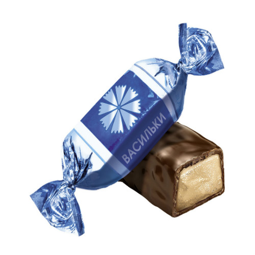 Конфеты Васильки производства Красный Октябрь можно купить оптом с доставкой по Москве, Подмосковью и ЦФО. Низкая цена обусловлена отсутствием посредников при наличии прямого договора с производителем.  Все актуальные сертификаты в наличии. Минимальный заказ: 1 коробка